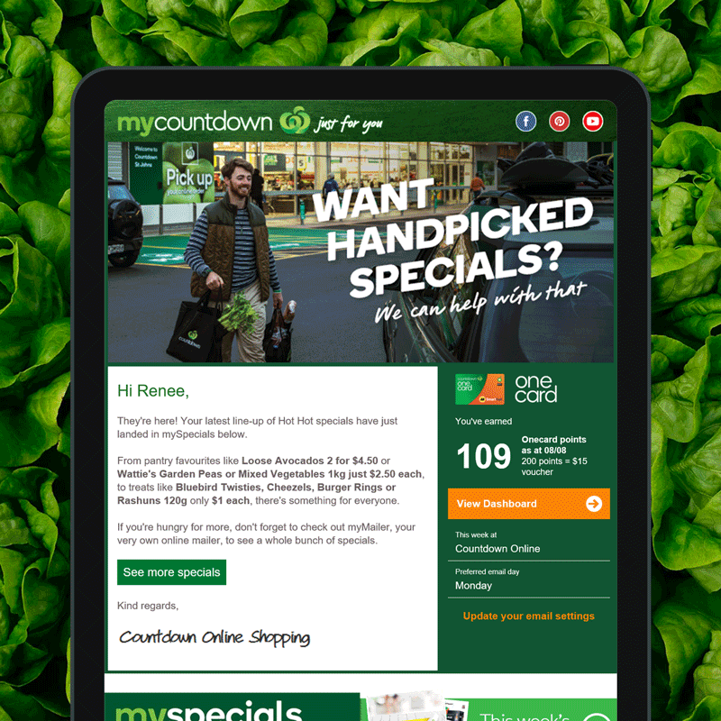 このプログラムを通してCountdown は、顧客とそのニーズを把握していることを彼らの顧客に対して示すことができました。結果として、顧客 1 人あたり15 ドルの支出が増加し、エンゲージメント率は 25 ~ 50% となりました。(プログラムとパーソナライゼーションのレベルに応じて)